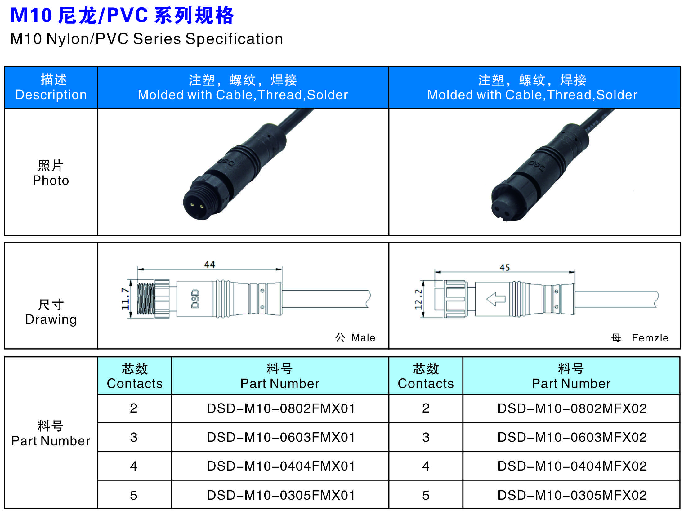 M10尼龍PVC適用于通信照明等需要連接線的領域