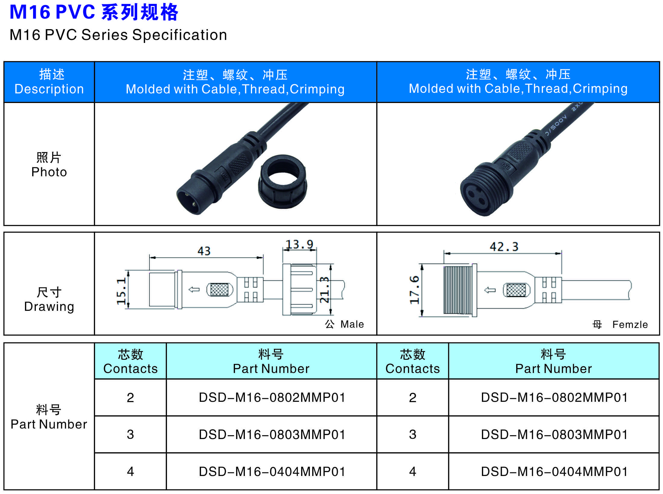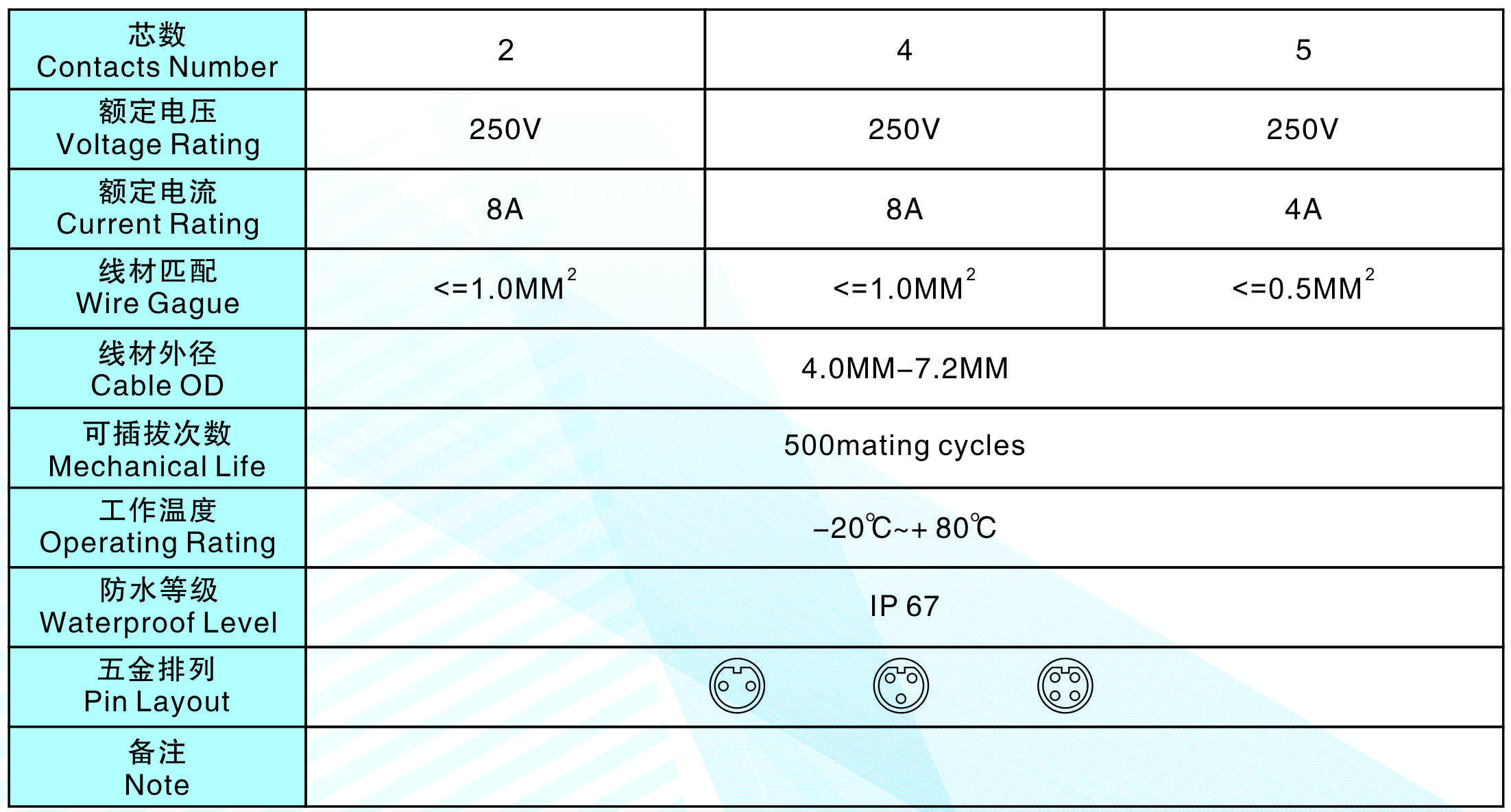 芯數(shù)(Contacts Number) : 2芯 3芯 4芯