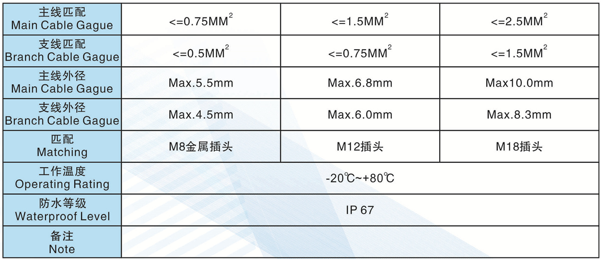 支線外徑(Branch Cable Gague):Max.4.5mm