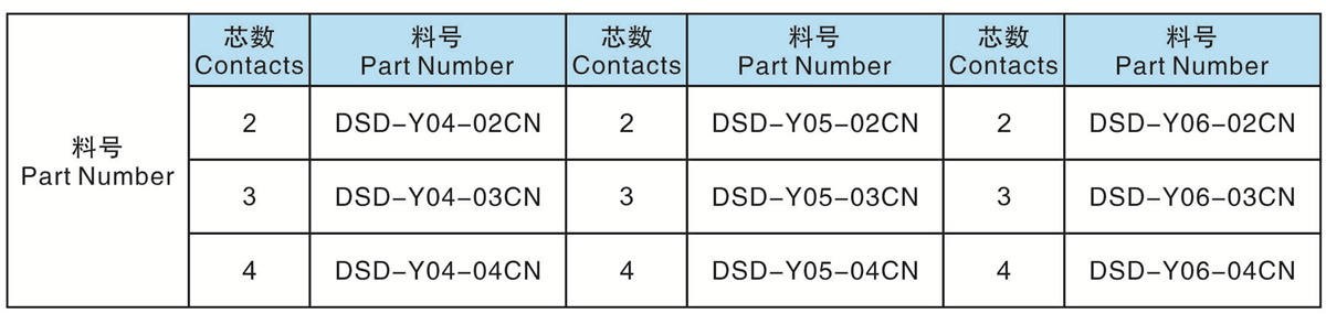 芯數(shù)(Contacts  Number):   2 - 4 芯